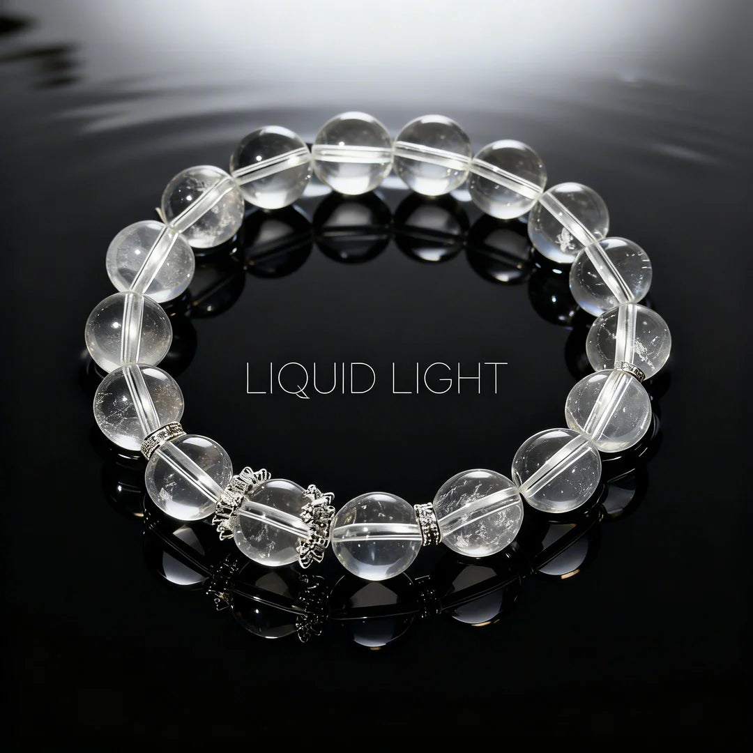 Pure Clear Quartz Energy Bracelet with Silver Charms – Genuine Crystal Healing Jewelry