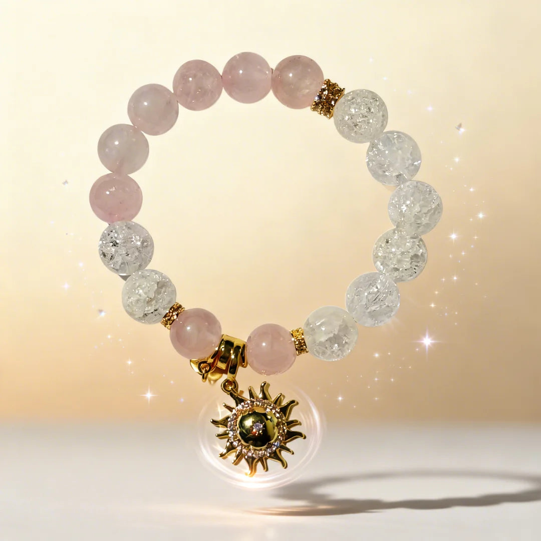 Rose Quartz & Crackle Crystal Sun Charm Bracelet – Love & Energy Healing Jewelry